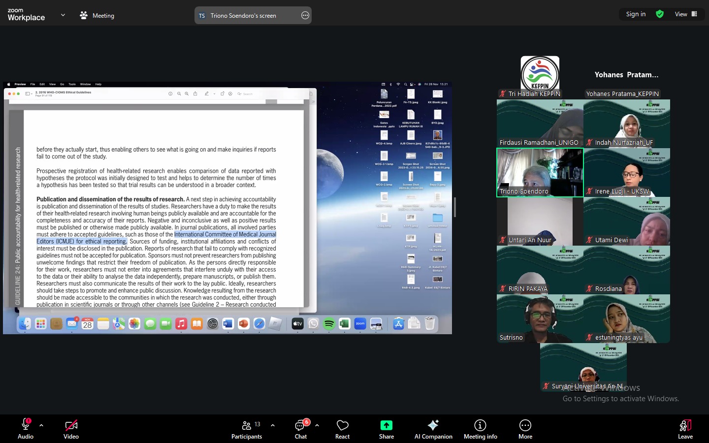 Melalui pelatihan ini, KEPPIN terus menjalankan komitmennya dalam meningkatkan pemahaman etik penelitian sekaligus mendukung transformasi digital dalam pengelolaan protokol penelitian di Indonesia.