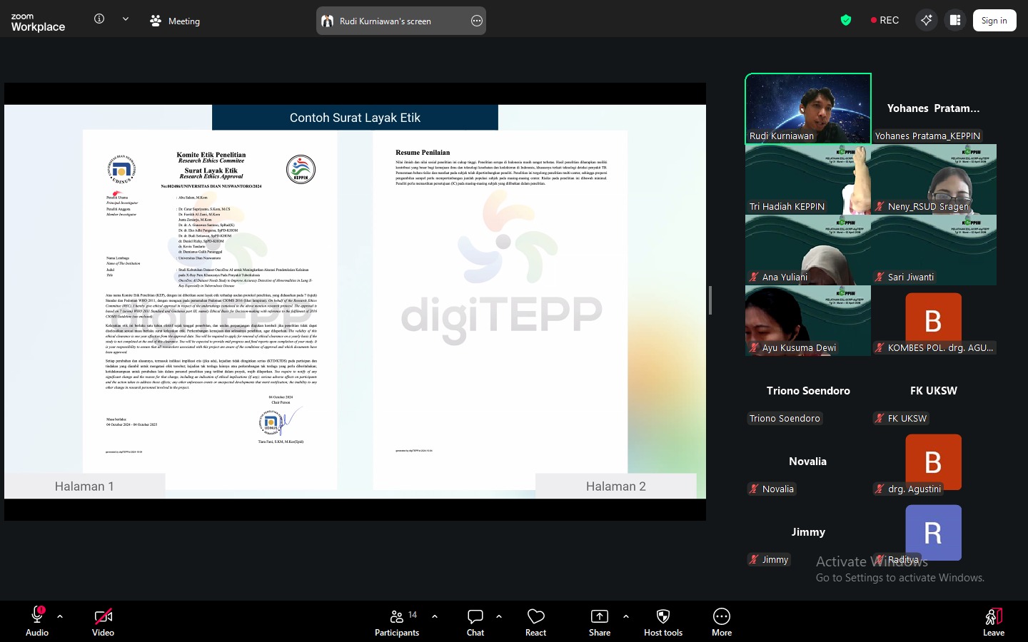 Pada hari kedua sesi siang, kegiatan diisi dengan pengenalan Aplikasi DigiTEPP (Digitalisasi Telaah Etik Protokol Penelitian) yang dipandu oleh Pak Rudi, selaku tim pengembang aplikasi. Sesi ini memberikan pemahaman praktis mengenai sistem digital dalam proses pengajuan dan telaah etik protokol penelitian yang lebih efektif dan transparan.