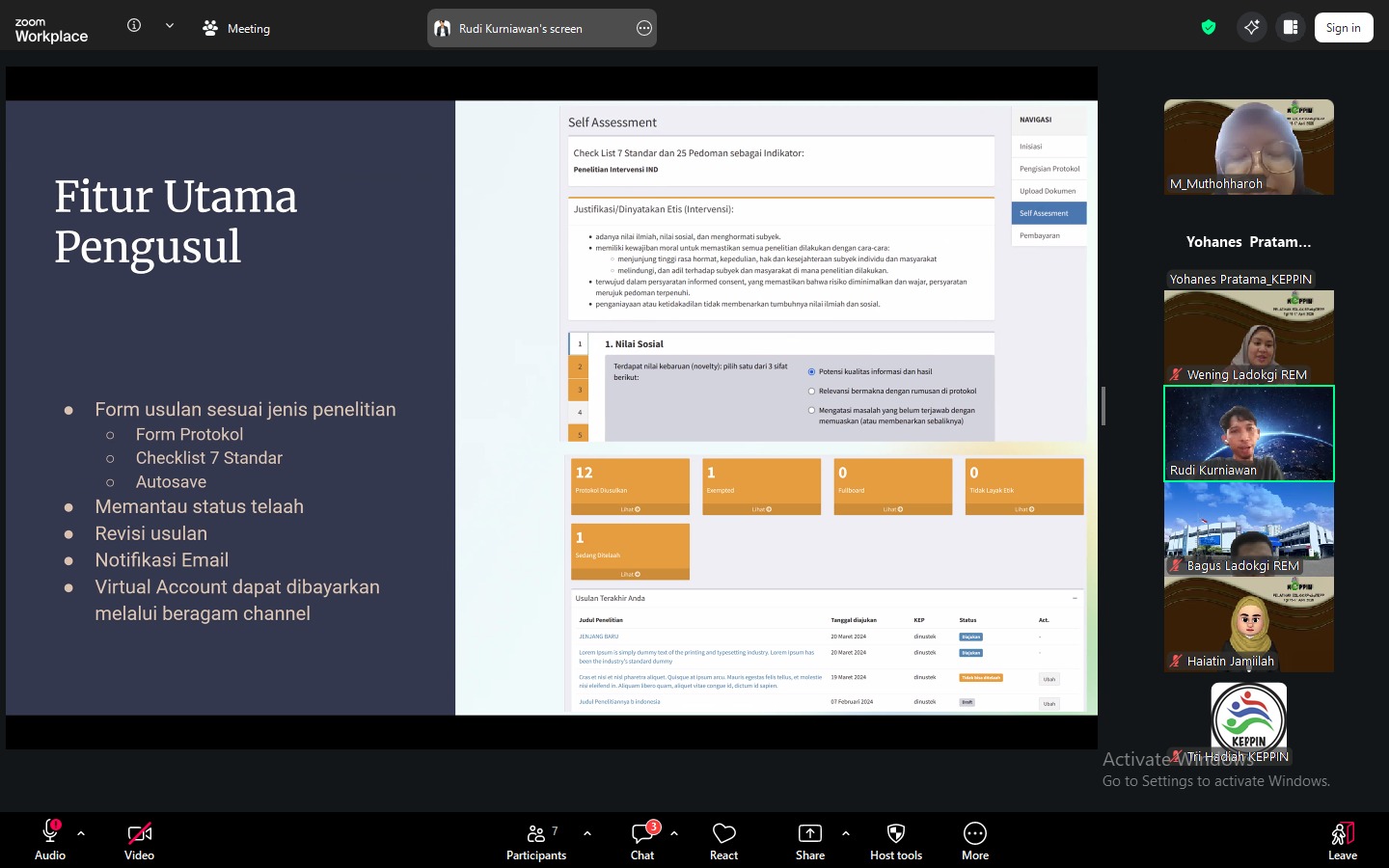 Melalui kegiatan ini, KEPPIN terus berkomitmen dalam mendukung peningkatan mutu etik penelitian serta pemanfaatan teknologi digital dalam proses telaah protokol penelitian di Indonesia.