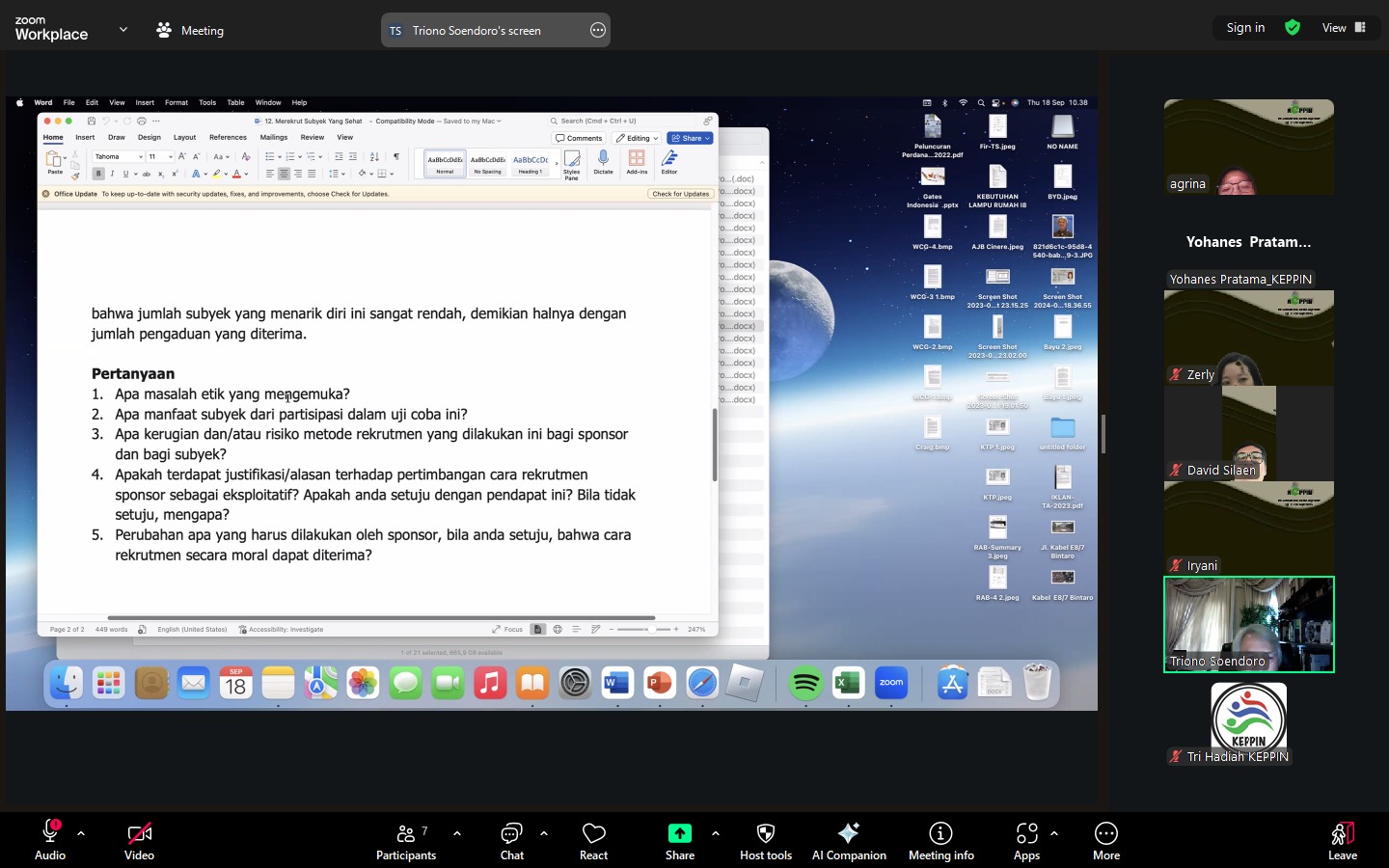 Pelatihan ini dihadiri oleh peserta dari STIKES Husada Jombang, RS Imanuel Way Halim, dan LPPM Universitas Riau. Materi utama dibawakan langsung oleh Dr. Triono Soendoro, M.Sc., M.Phill., Ph.D., selaku Ketua KEPPIN, yang memberikan pemahaman mendalam mengenai prinsip etik penelitian dan penerapan protokol riset klinis yang baik.